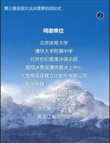 12月16日由国家体育总局、冬奥组委、北京市政府、河北省政府主办的“全国第三届大众冰雪季”,在首都体育馆隆重举行,上万人的体育馆座无虚席。中国国务院副总理刘延东,北京市委书记、冬奥组委会主席郭金龙,世界冰壶联合会主席凯特出席仪式;冰雪冠军申雪、赵宏博、杨阳、叶乔波等参加节目表演;由中央5套著名体育节目主持人张斌主持。